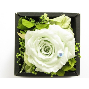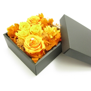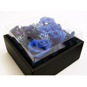 しっかりした素材のペーパーポックスはシックな黒をチョイス、クリアケースでカバーすることで埃や汚れから花をしっかり守ります。大切な人への贈り物はもちろん、ご自宅でのインテリアとしても最適です。